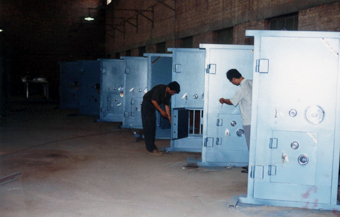 武邑縣龍牌柜業(yè)有限公司原名“武邑縣金屬櫥柜廠”(黑龍港牌),由于增加注冊(cè)資金改名為“河北省龍牌保險(xiǎn)柜總廠”,于2003年企業(yè)升級(jí)為"武邑縣龍牌柜業(yè)有限公司,我廠已有三十年的生產(chǎn)歷史,是專(zhuān)業(yè)生產(chǎn)不銹鋼金庫(kù)門(mén)、移動(dòng)金庫(kù)的廠家。廠區(qū)占地面積42154平方米,建筑面積16861平方面,設(shè)備齊全,年產(chǎn)量可達(dá)3萬(wàn)臺(tái)(套)。